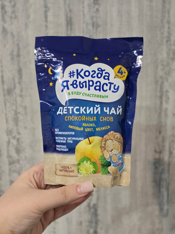 یک چای طبیعی مخصوص کودکان بالای ۴ ماه، با ترکیبی از سیب، گل زیرفون (لیمو)، و بادرنجبویه (ملیسا). 🌿🦁