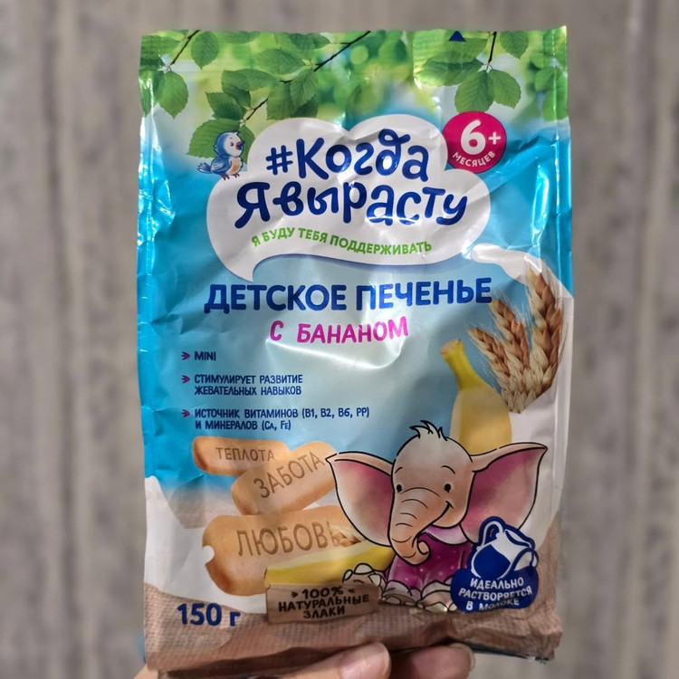 بیسکویت کودک با طعم موز ویژهی کوچولوهای نازنین ه به بالا. این بیسکویت از غلات ۱۰۰٪ طبیعی تهیهشده و بافت نرم و سبک دارد. کمک به یادگیری جویدن، کاملاً مناسب دستهای کوچولو بدون فشار به معدهی حساس کودک. سرشار از ویتامین و مواد مغذی از جمله ویتامینهای B1، B2، B6، PP و کلسیم و آهن.